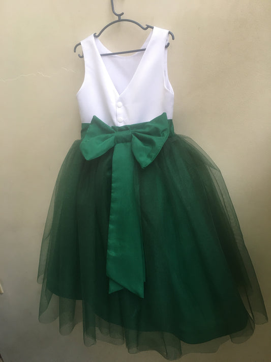 Macy Dress in White and Emerald Green