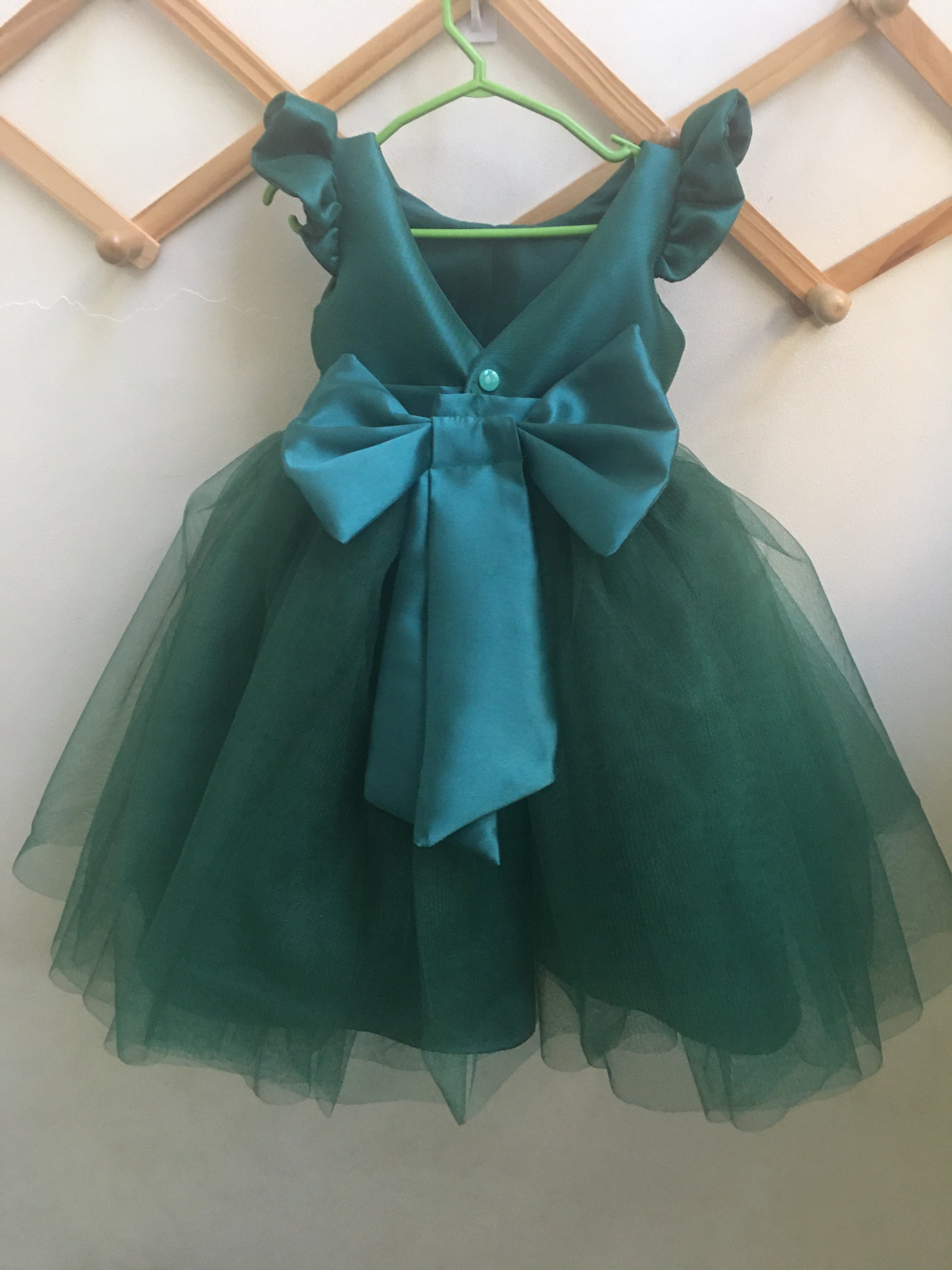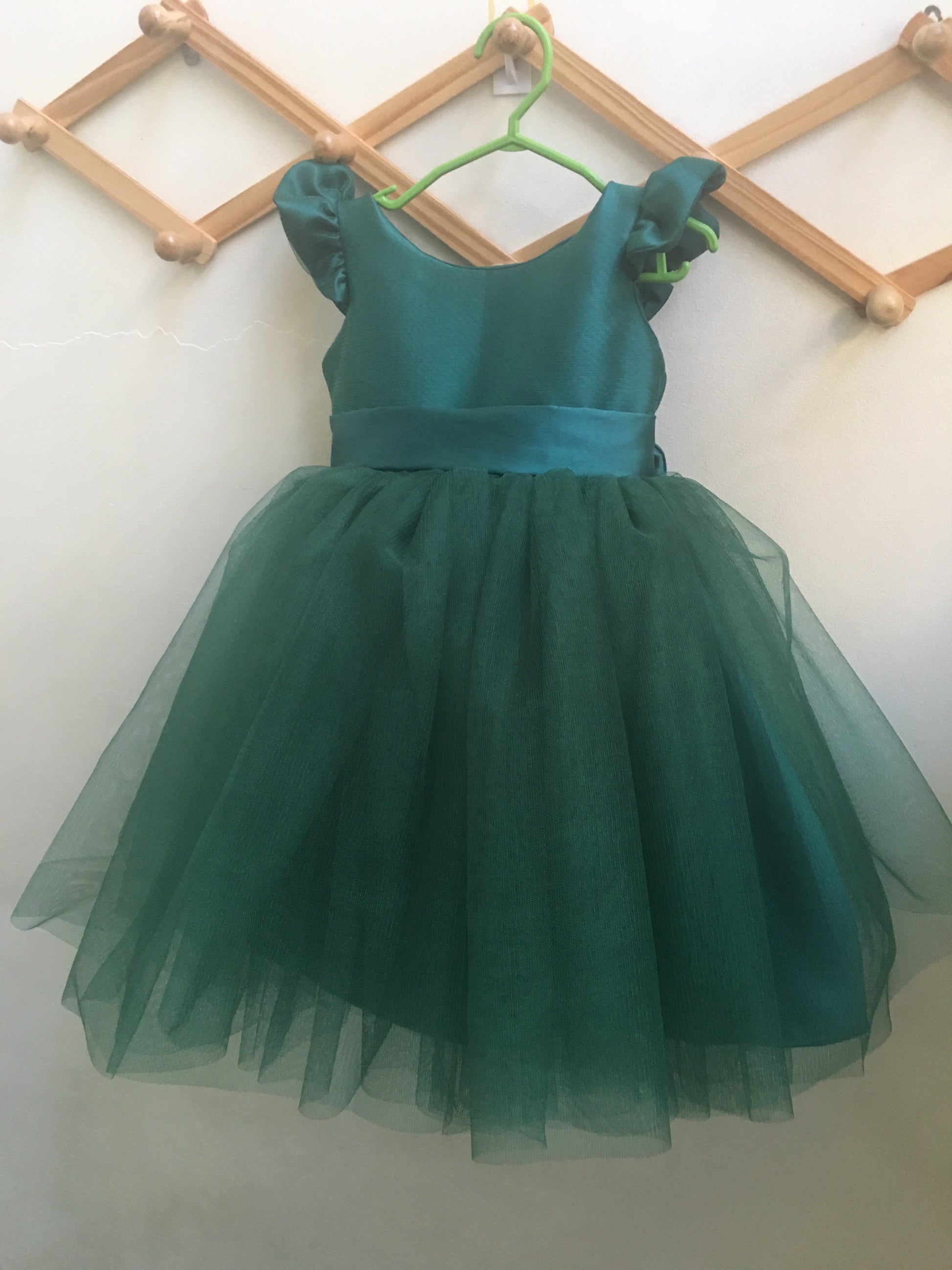 Materials: Satin, Silk for Lining, Tulle Skirt, Built-in Petticoat
