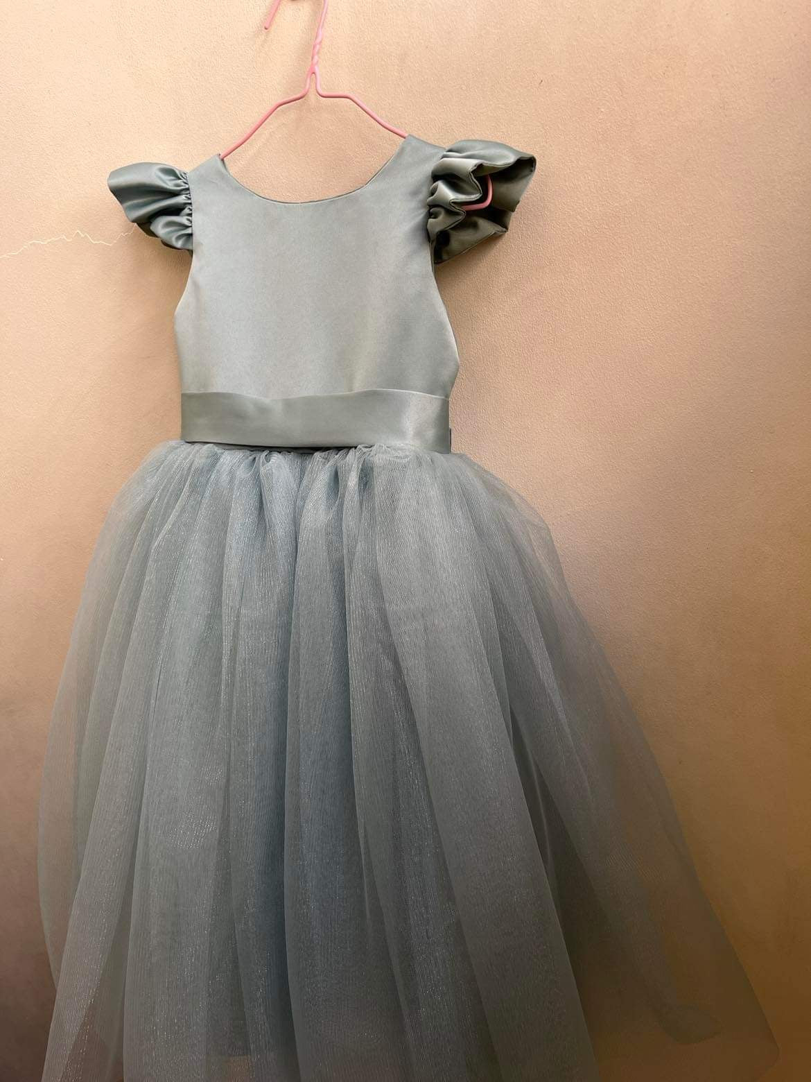 Materials: Satin, Silk for Lining, Tulle Skirt, Built-in Petticoat