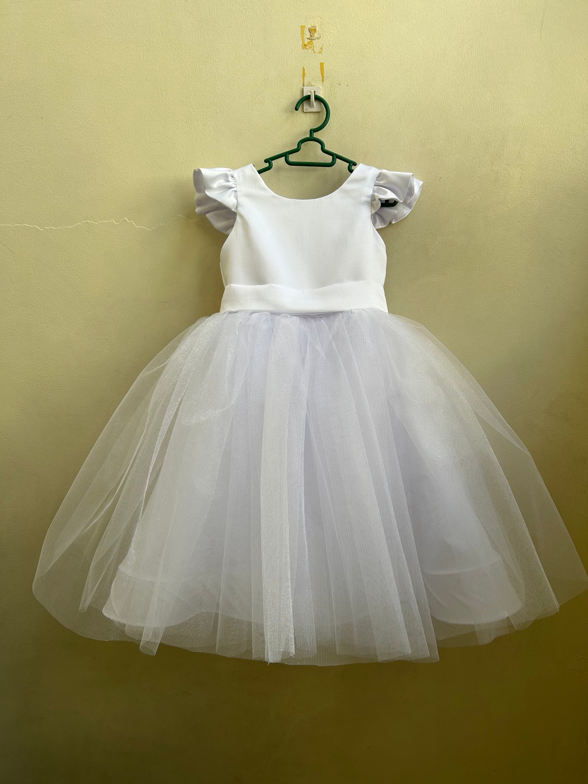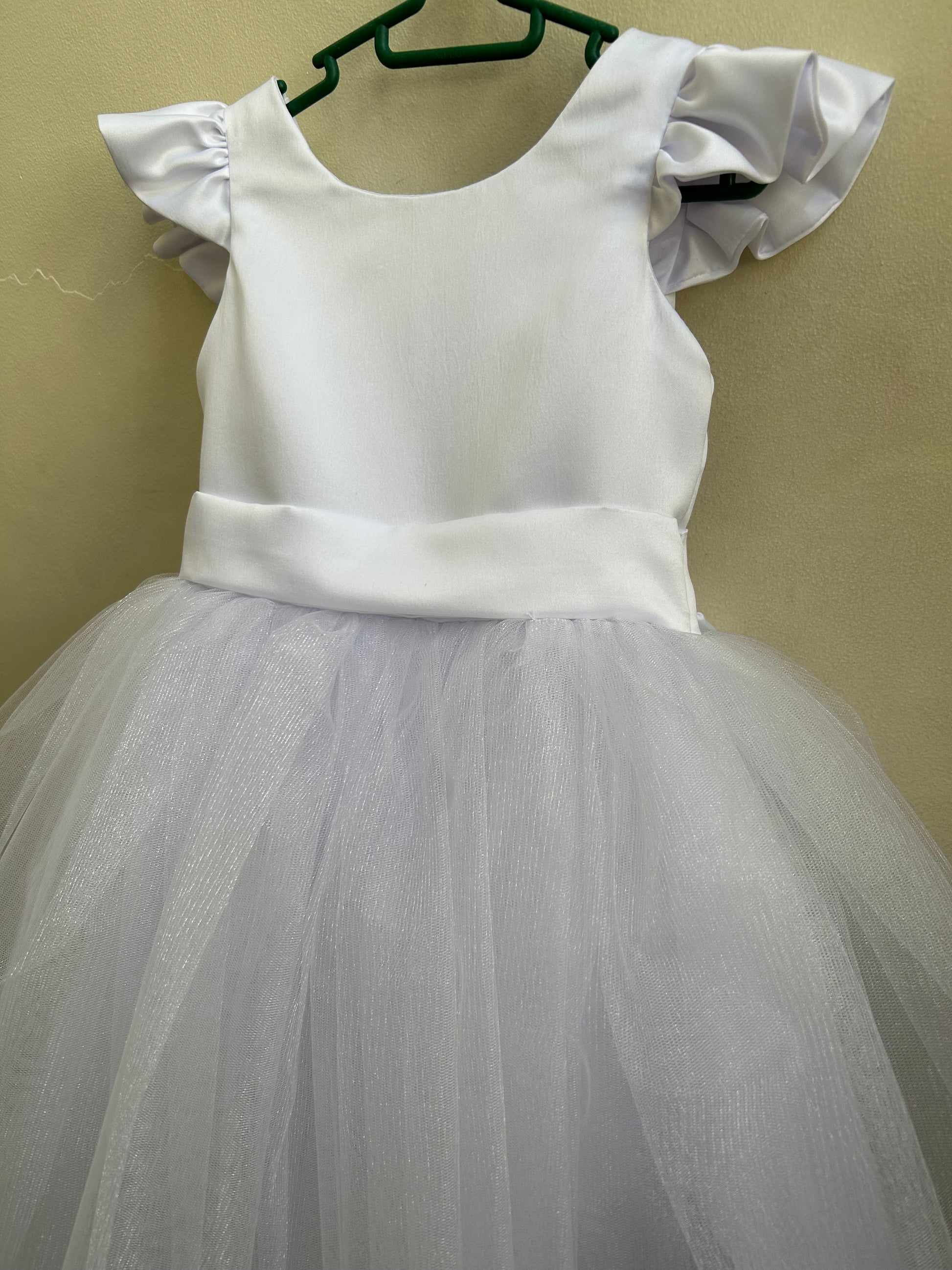Materials: Satin, Silk for Lining, Tulle Skirt, Built-in Petticoat