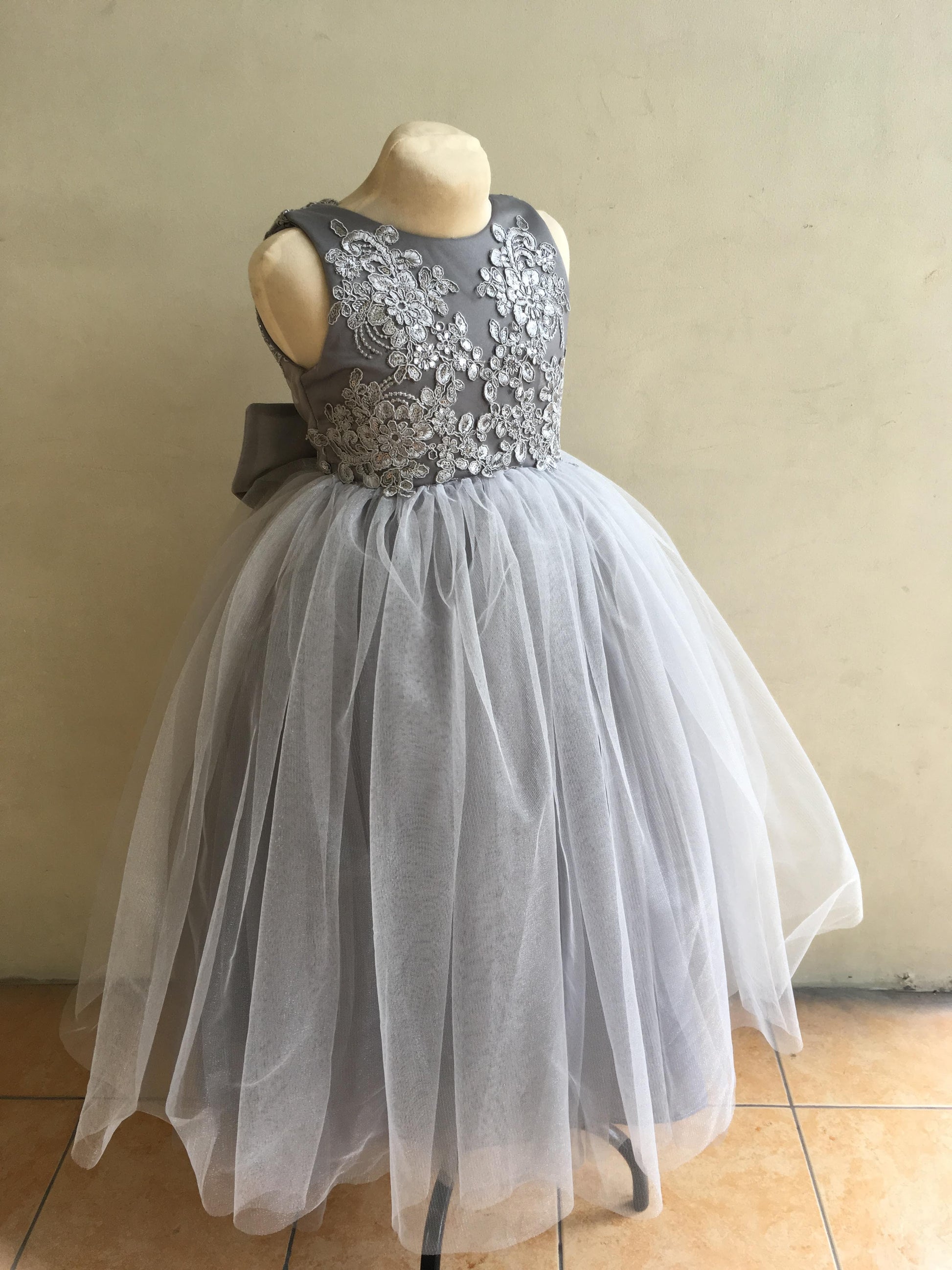 The skirt of the gown is made with layers of soft tulle, creating a full and voluminous look that is sure to make your child feel like a princess.