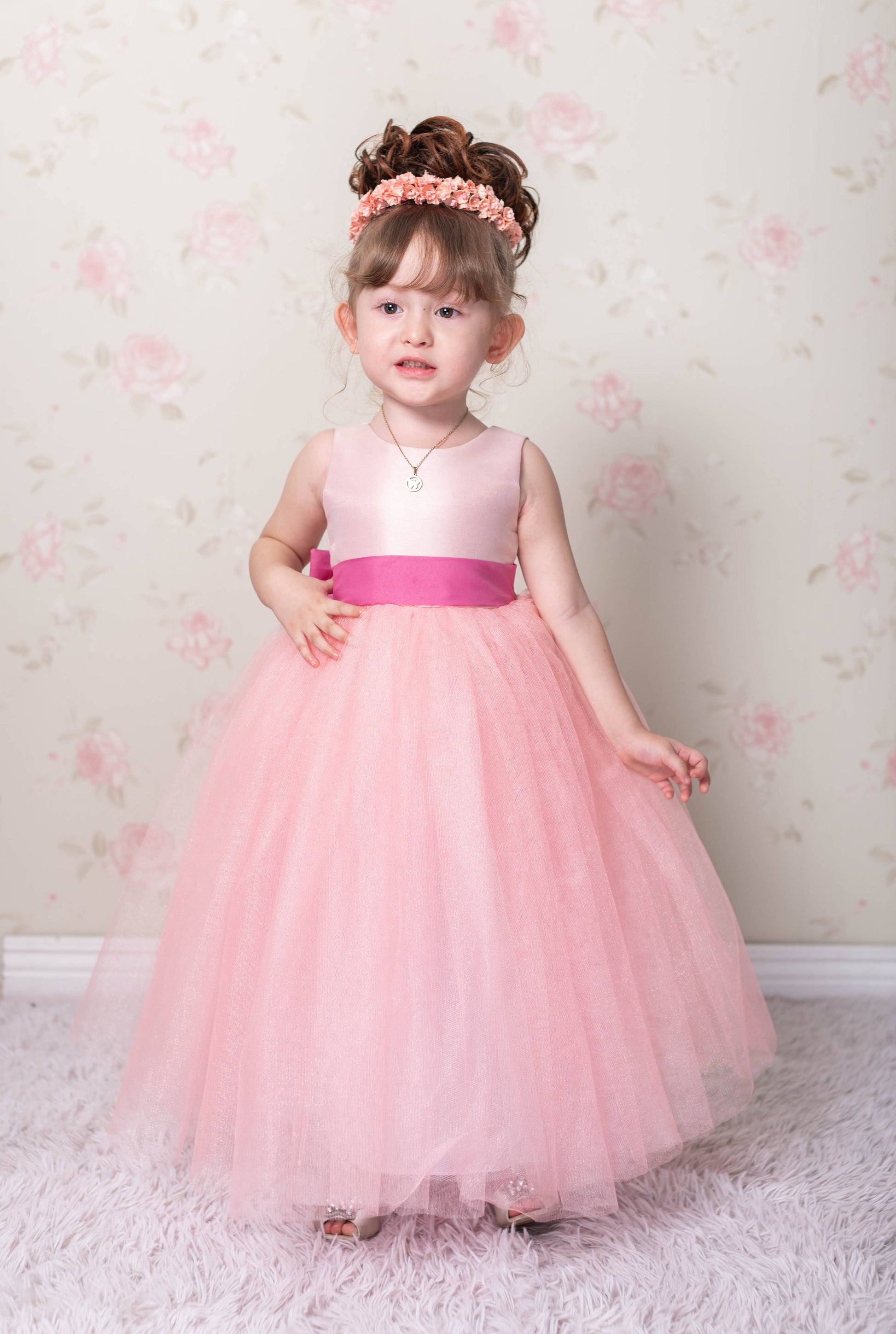 Materials: Satin, Silk for Lining, Tulle Skirt, Built-in Petticoat