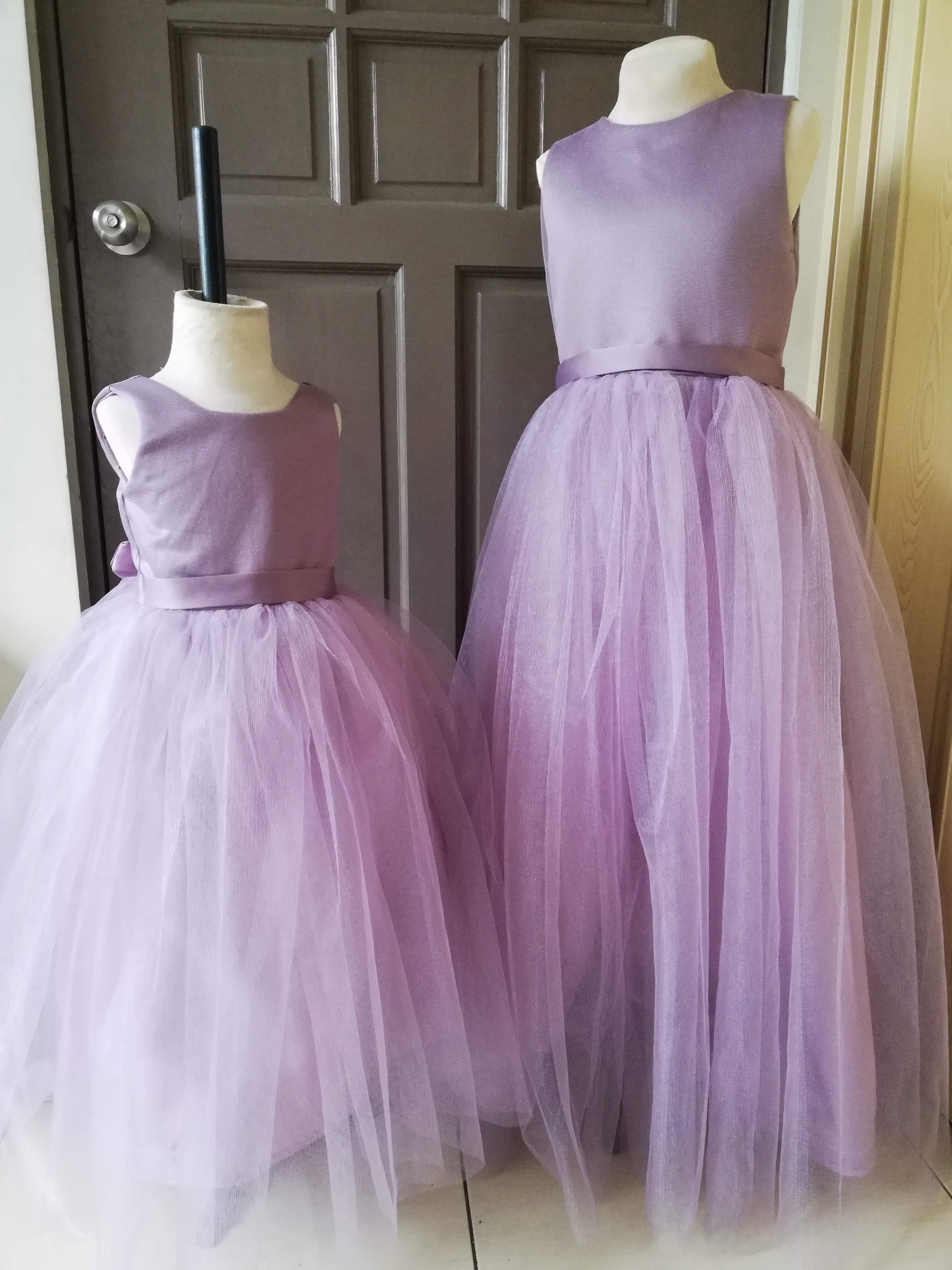 Materials: Satin, Silk for Lining, Tulle Skirt, Built-in Petticoat