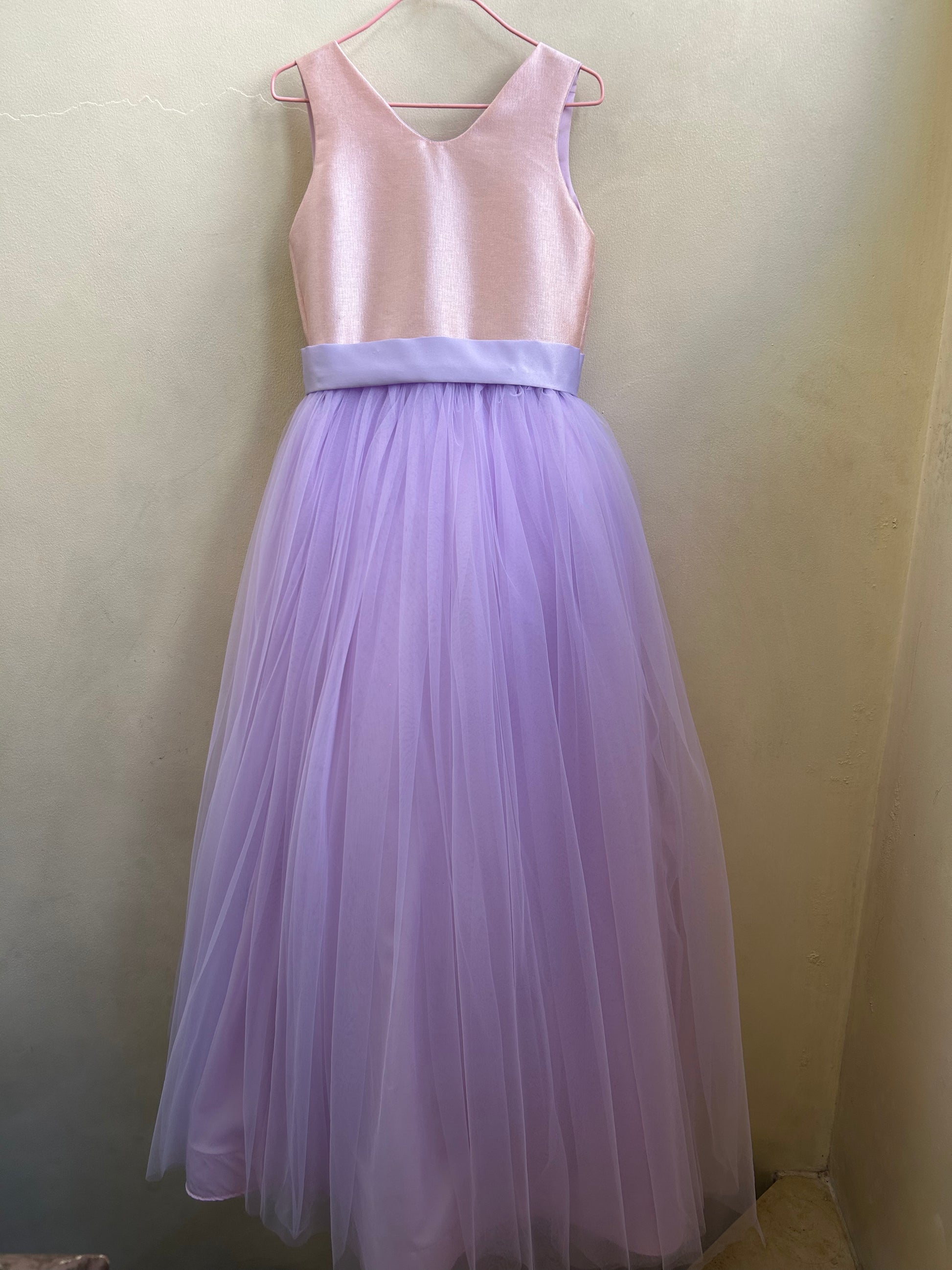 Materials: Satin, Silk for Lining, Tulle Skirt, Built-in Petticoat