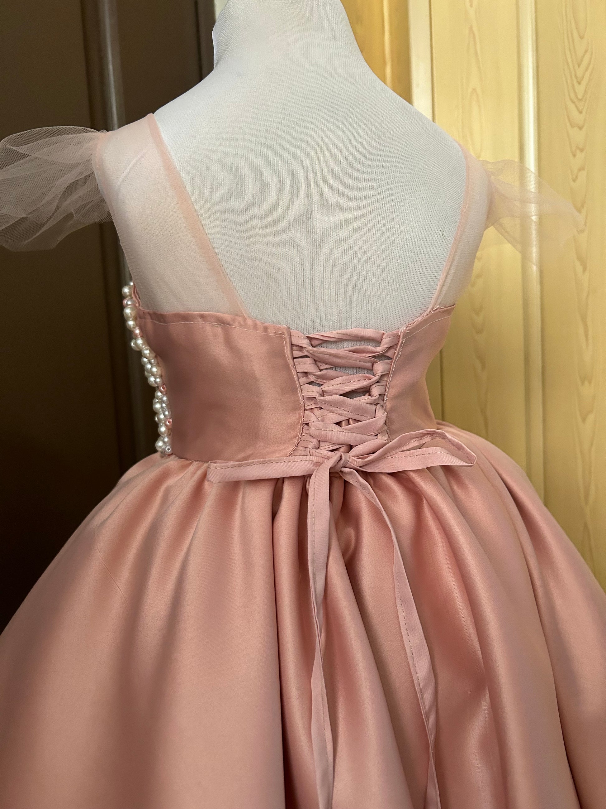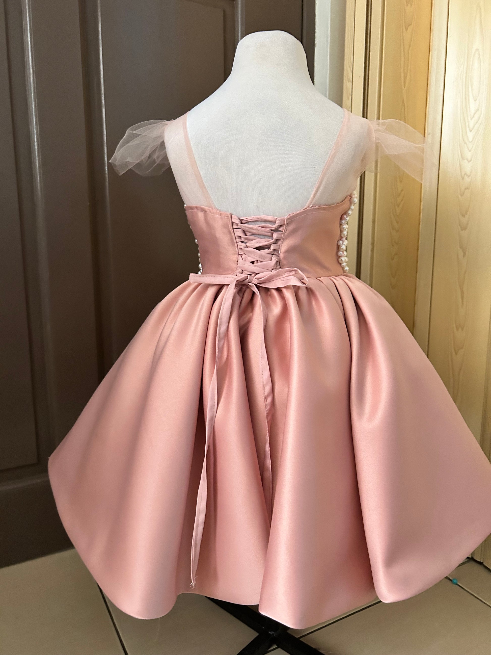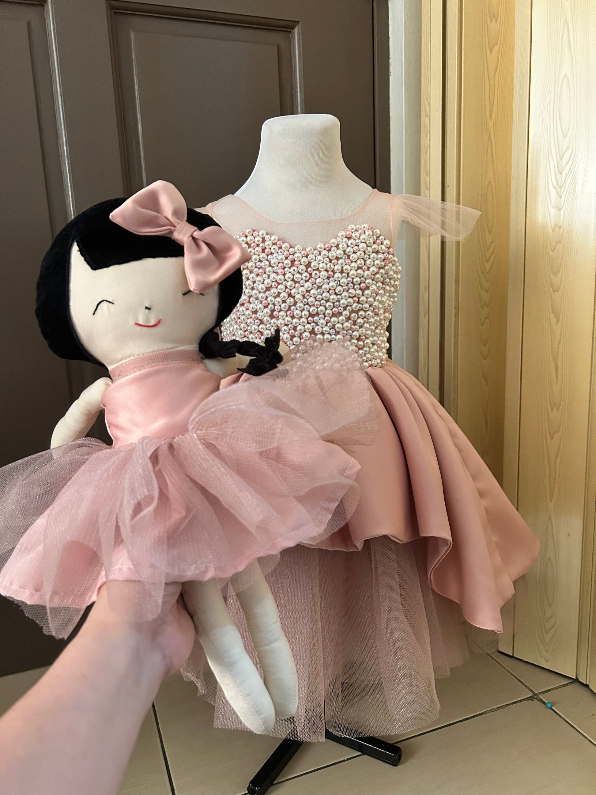 Make your little girl feel like a princess in this stunning gown featuring a full pearl studded bodice and a layered skirt