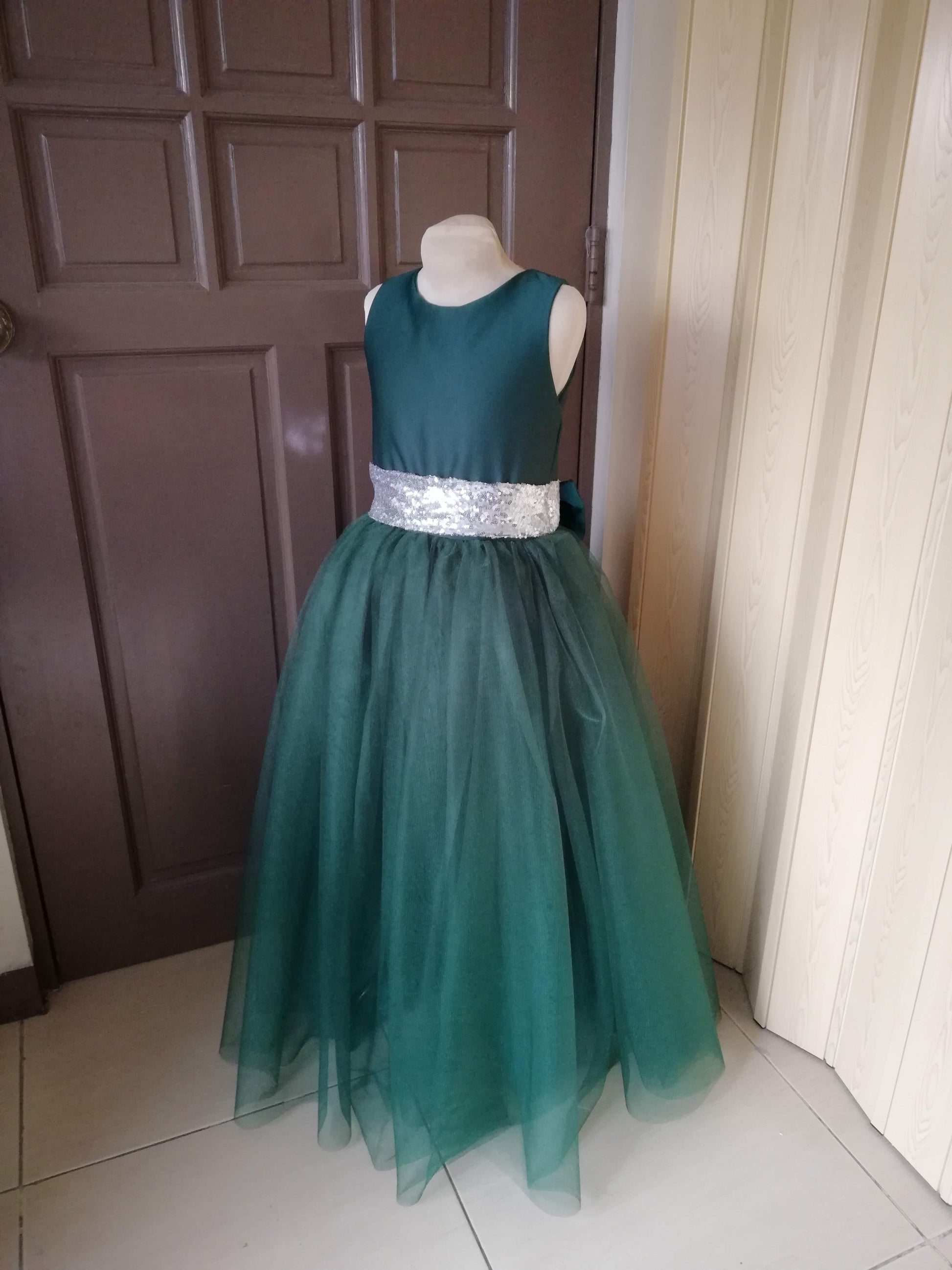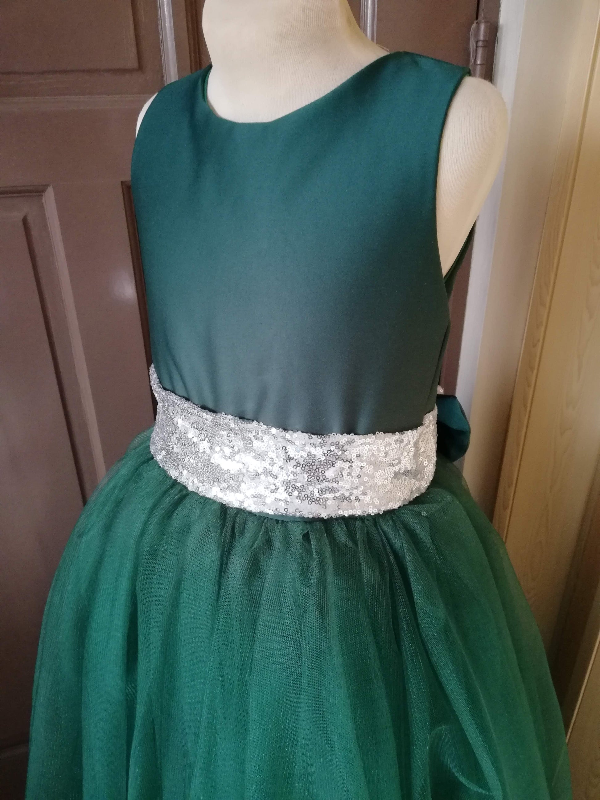 Macy Dress in Emerald Green and Silver Belt (Modified)