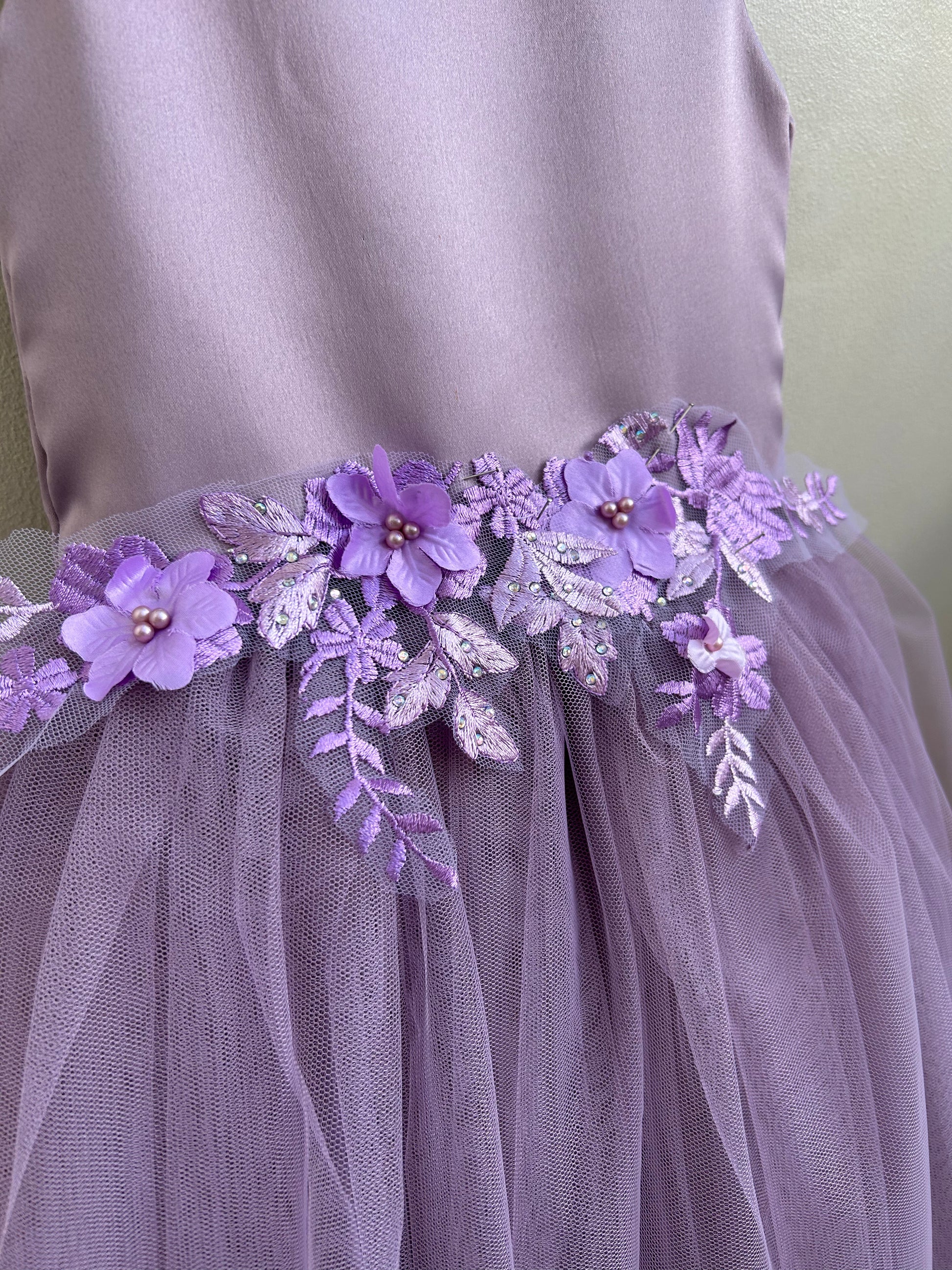 Materials: Satin, Silk for Lining, Tulle Skirt, Built-in Petticoat