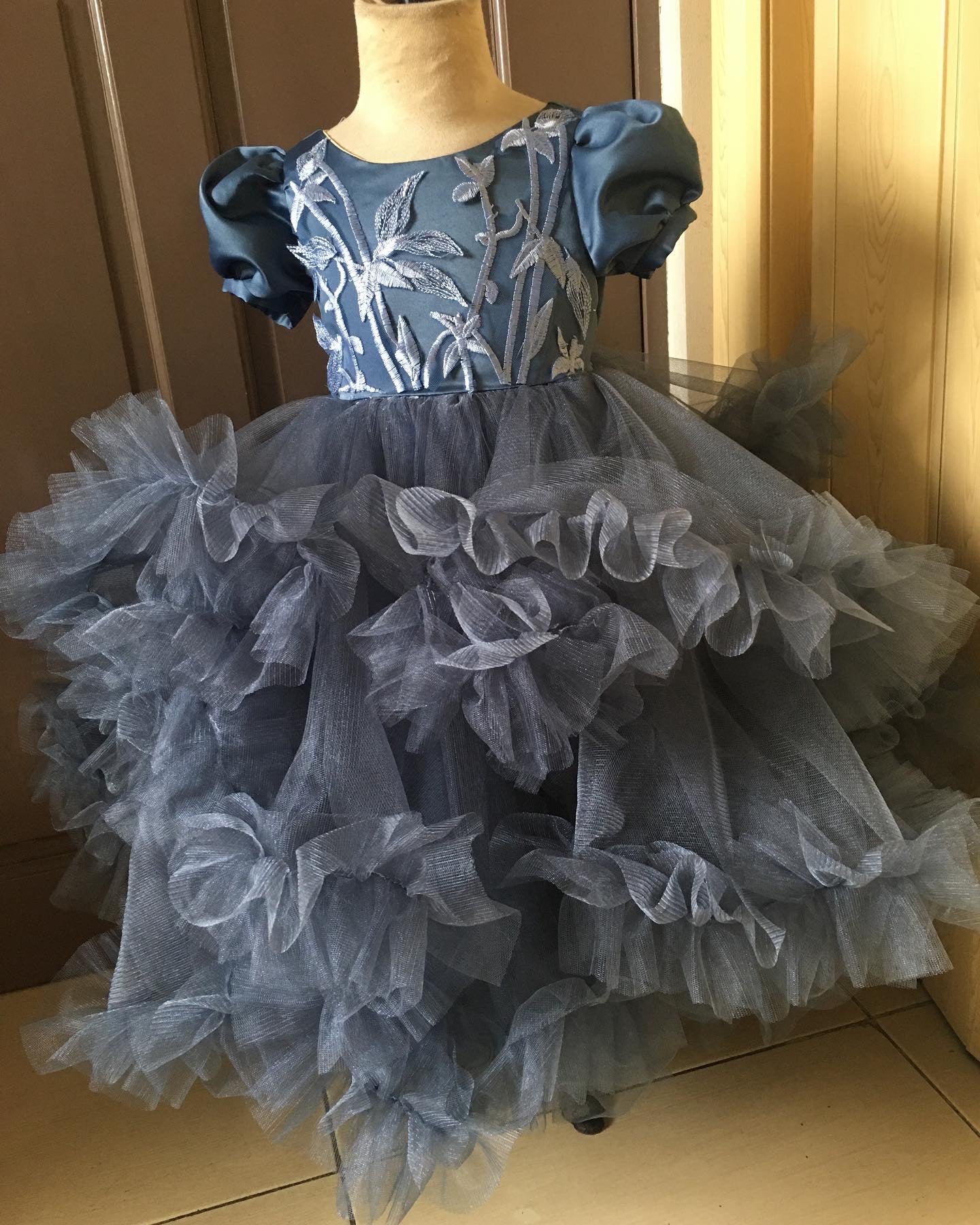 Make your little princess feel like a fairy tale character with this gown. The dress is perfect for special occasions like weddings, proms, birthdays, and other formal events. The gown is made of high-quality tulle fabric that's soft, light, and comfortable to wear. The dress features a full skirt with voluminous layered ruffles that give it a princess-like appeal.