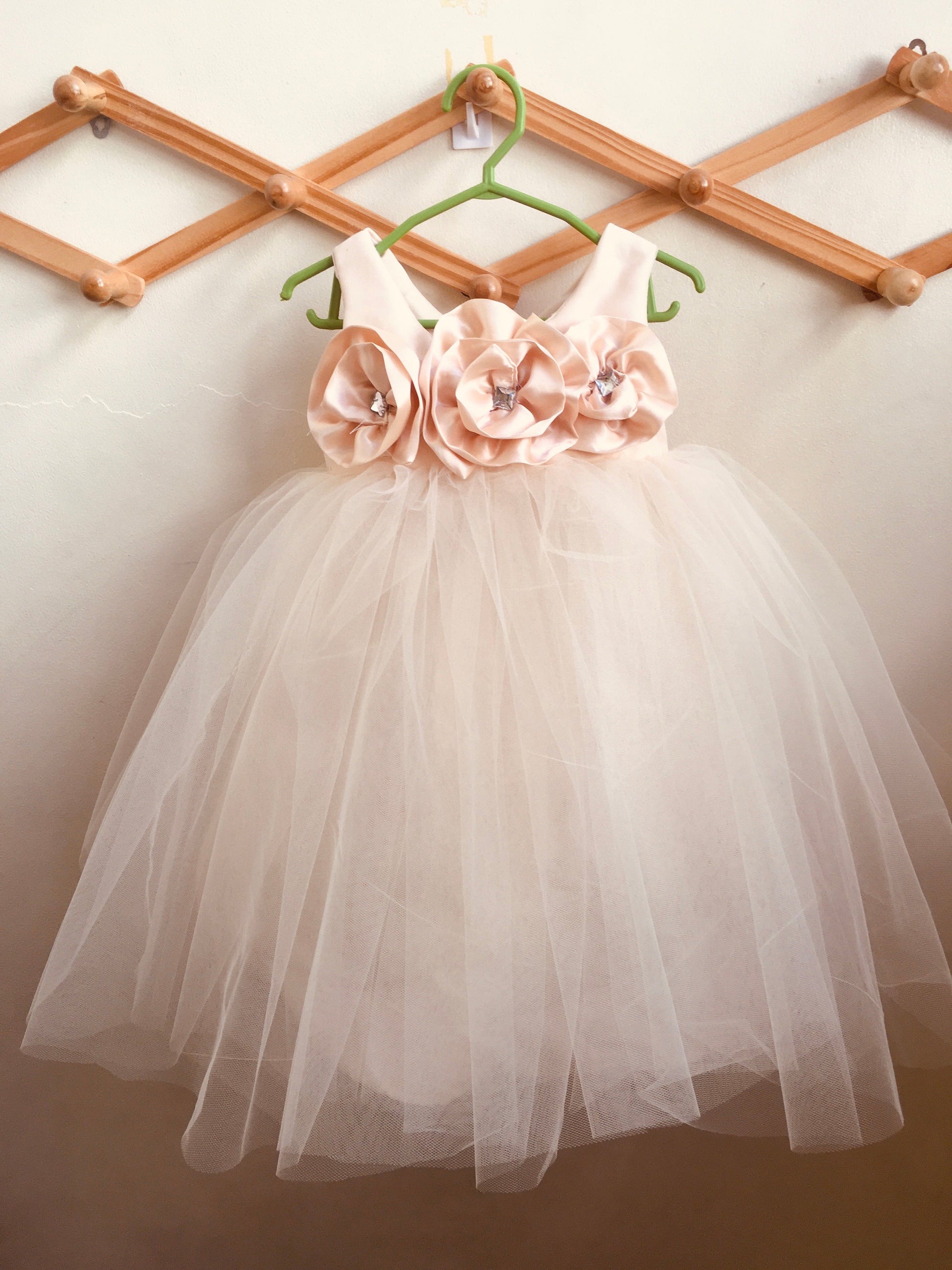 Princess is perfect for smaller girls. It has a raised baby doll waistline with handmade fabric flowers