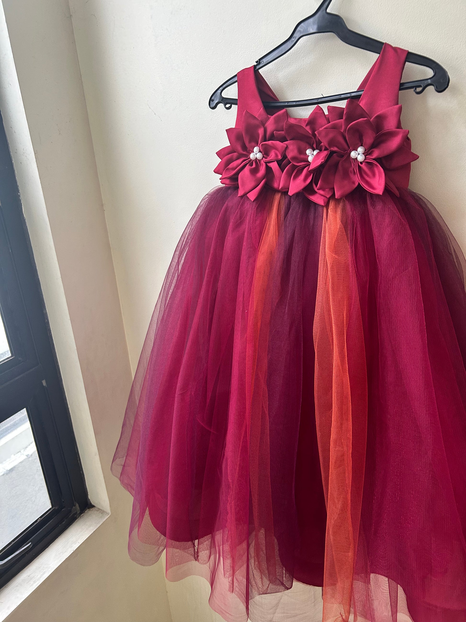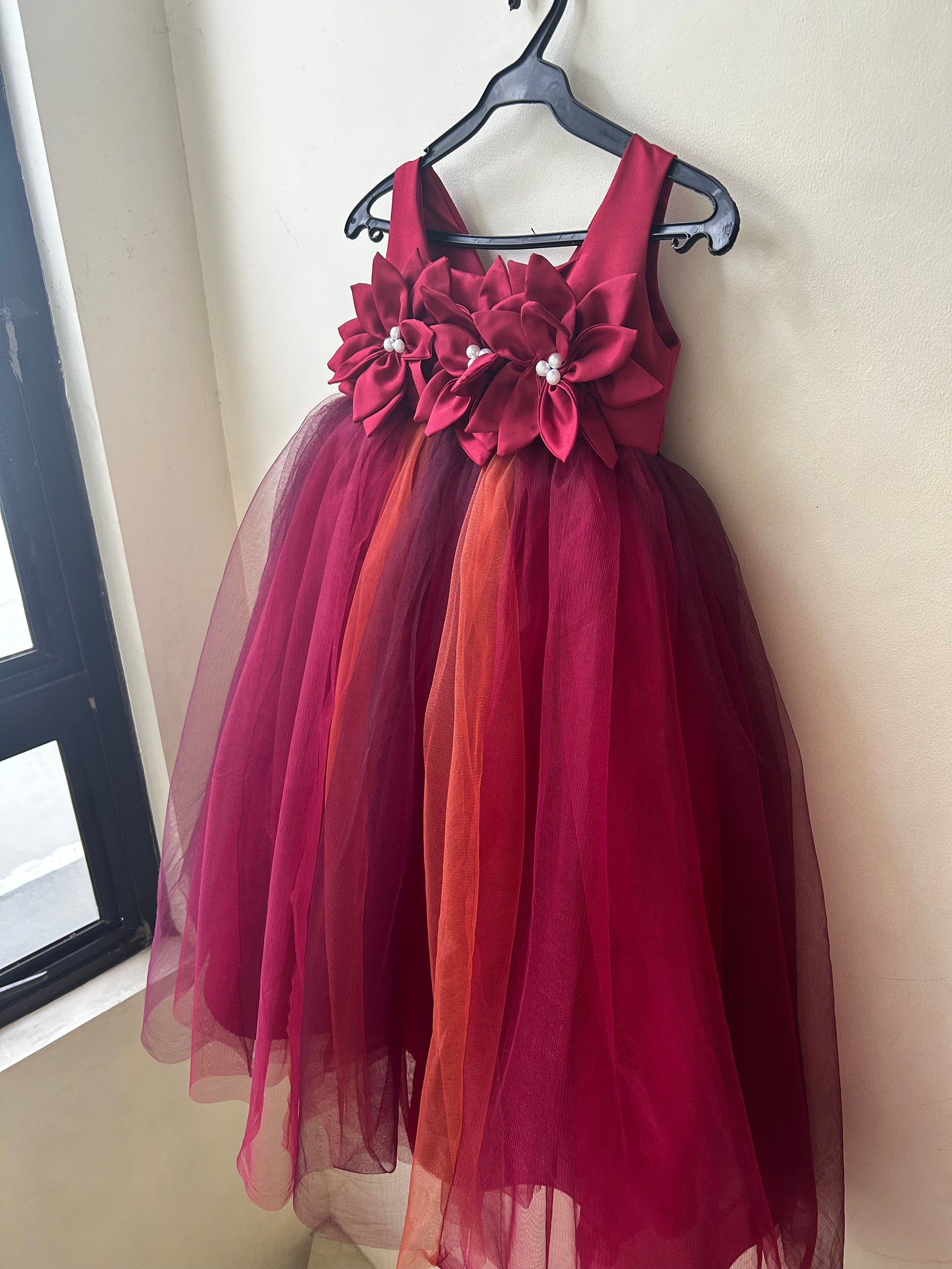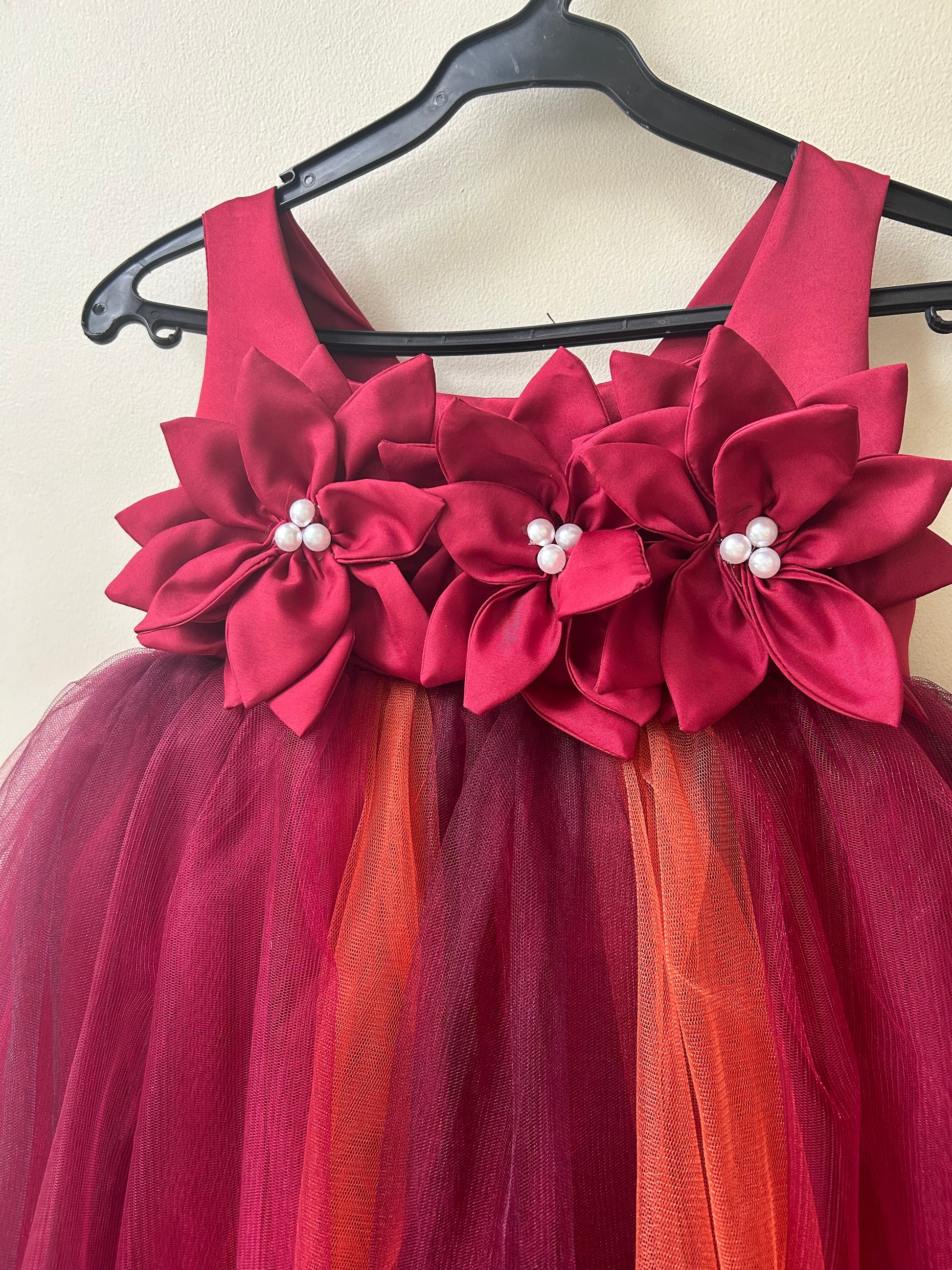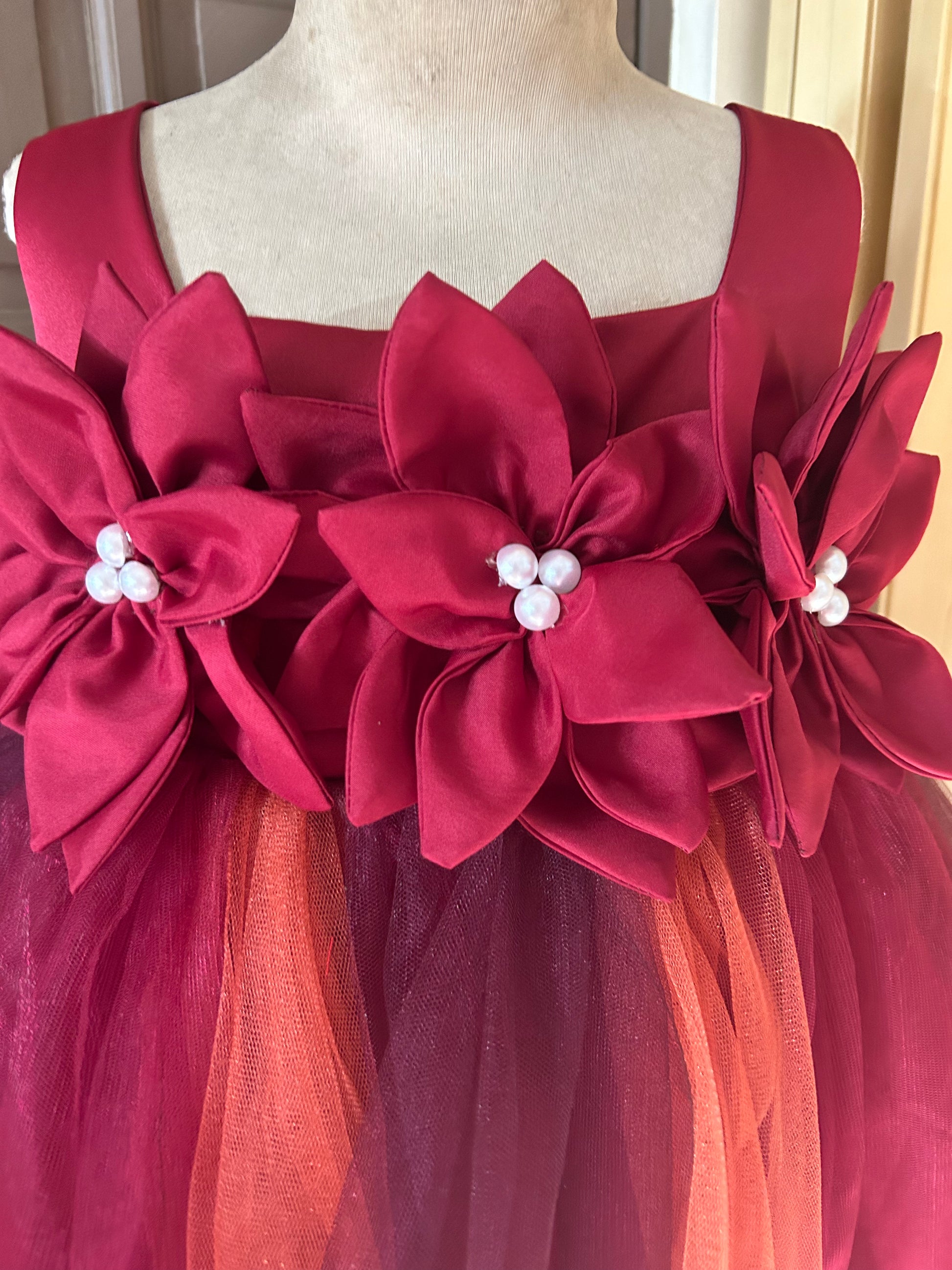 Princess is perfect for smaller girls. It has a raised baby doll waistline with handmade fabric flowers