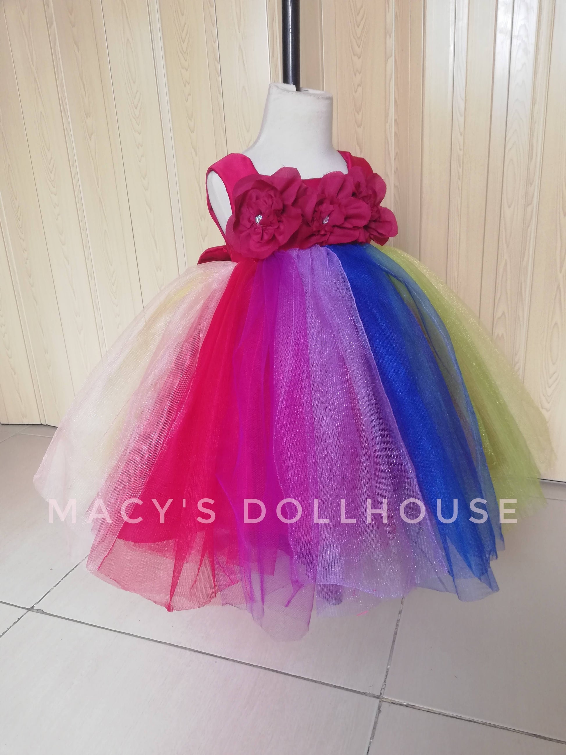 Princess is perfect for smaller girls. It has a raised baby doll waistline with handmade fabric flowers