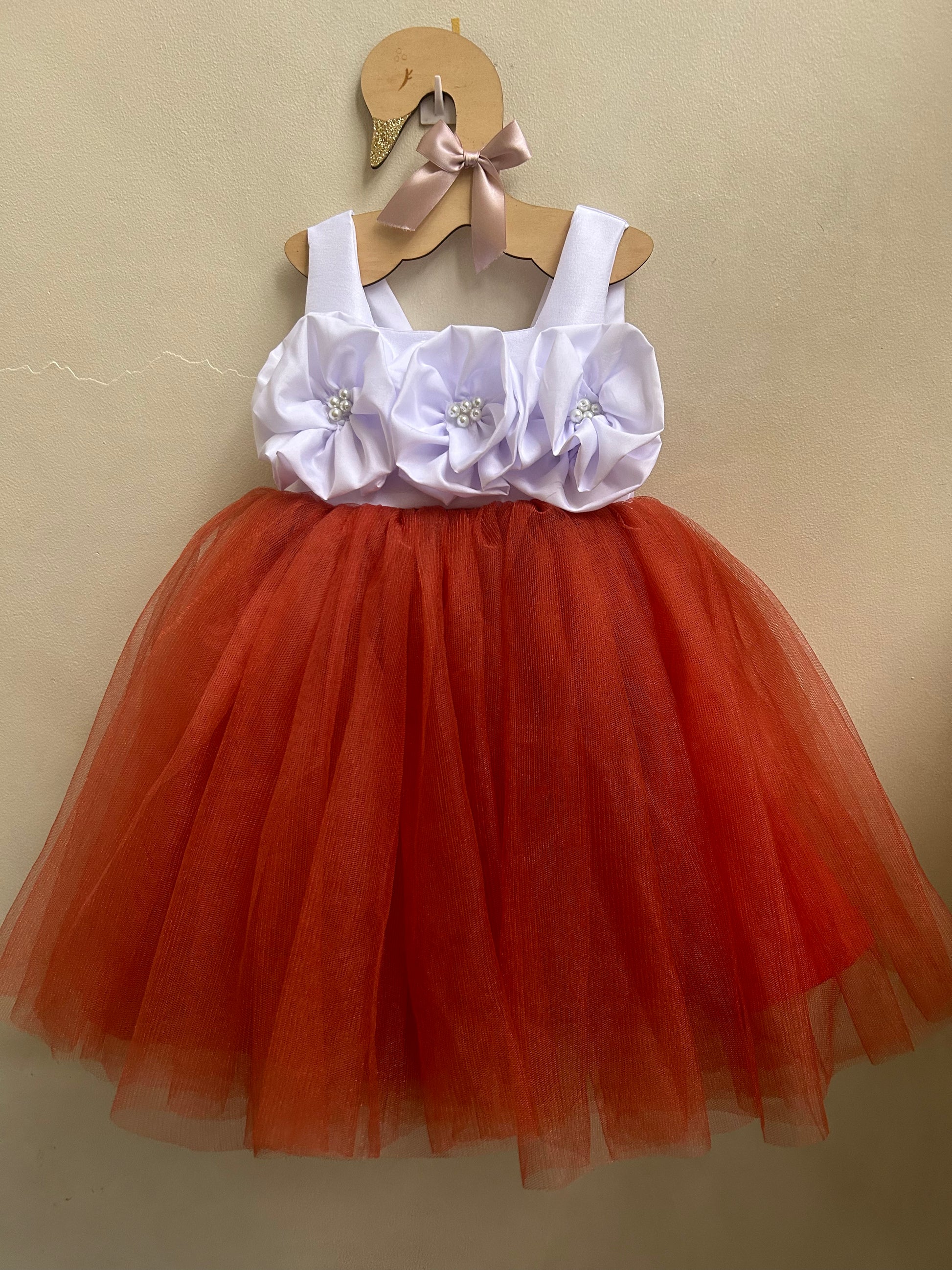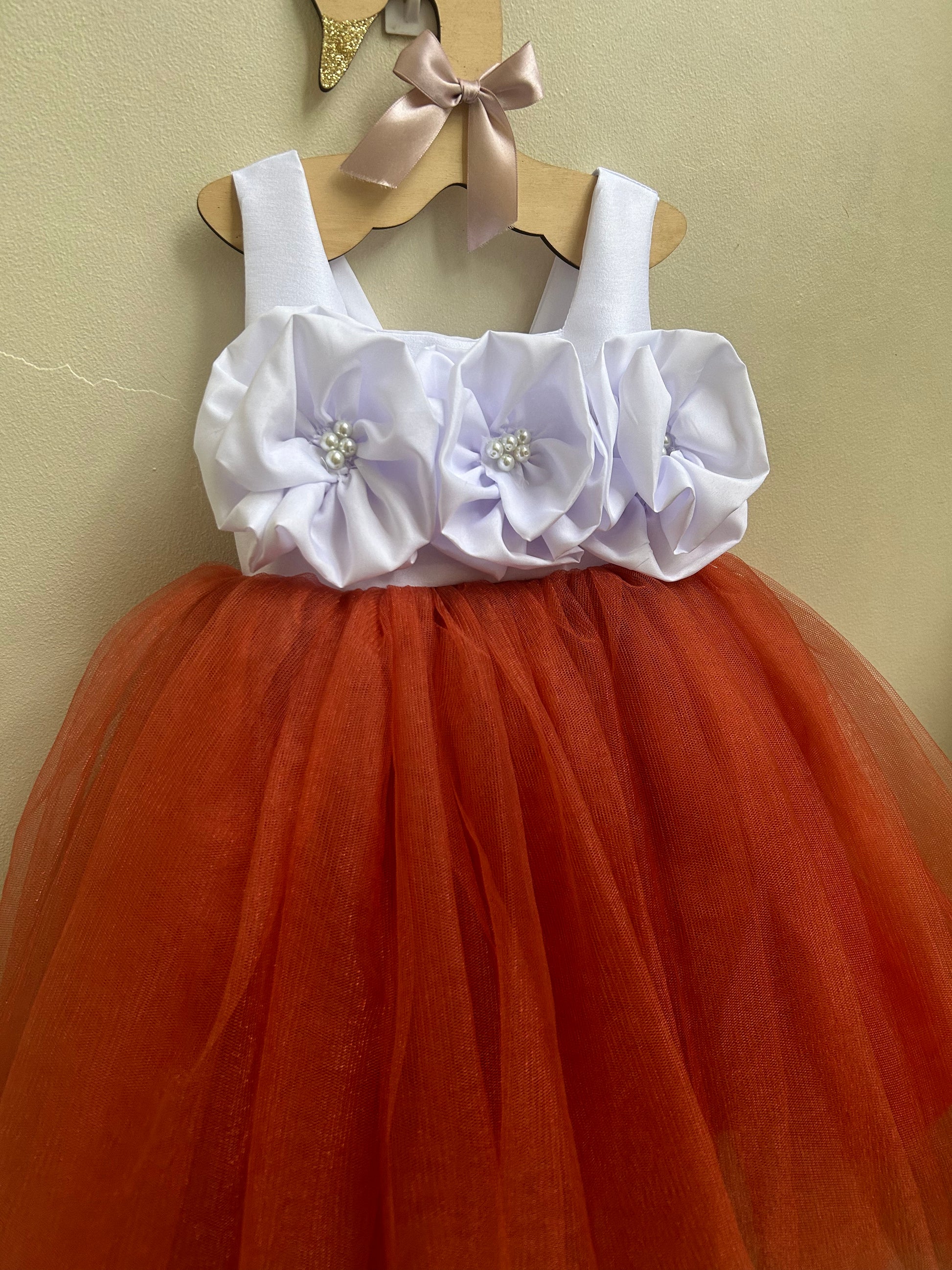 Princess is perfect for smaller girls. It has a raised baby doll waistline with handmade fabric flowers