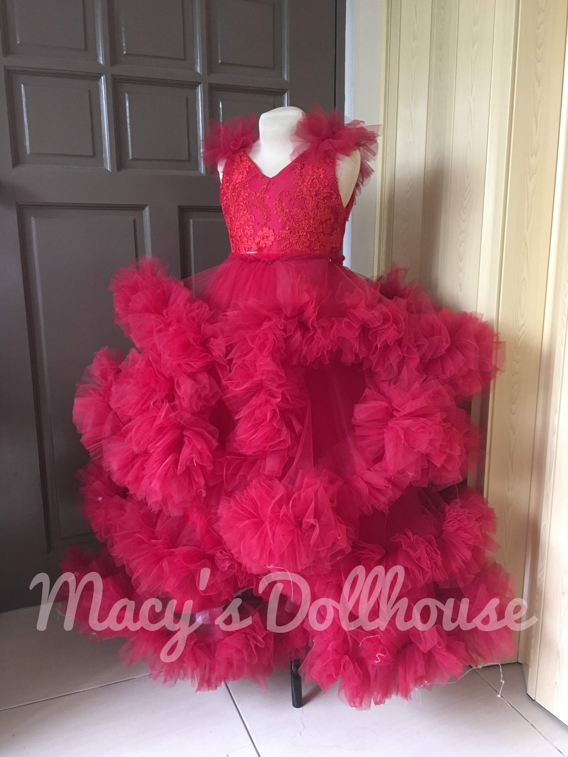 Make your little princess feel like a fairy tale character with this gown. The dress is perfect for special occasions like weddings, proms, birthdays, and other formal events. The gown is made of high-quality tulle fabric that's soft, light, and comfortable to wear. The dress features a full skirt with voluminous layered ruffles that give it a princess-like appeal.