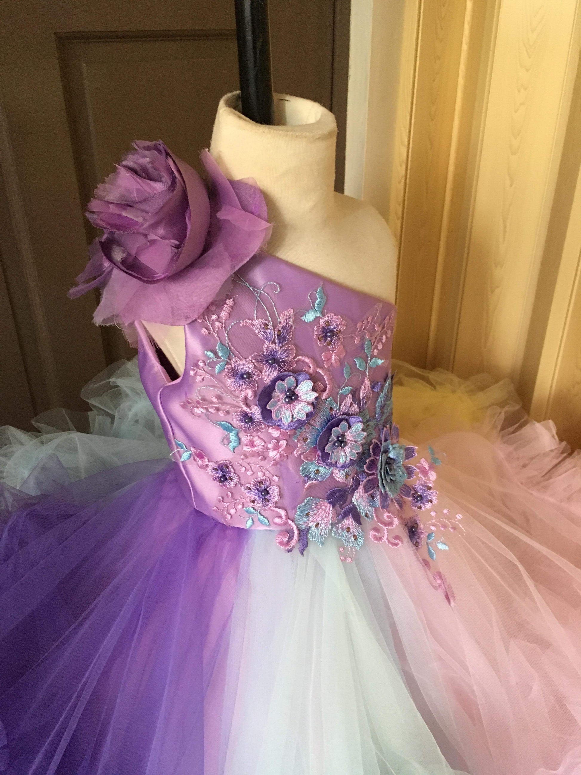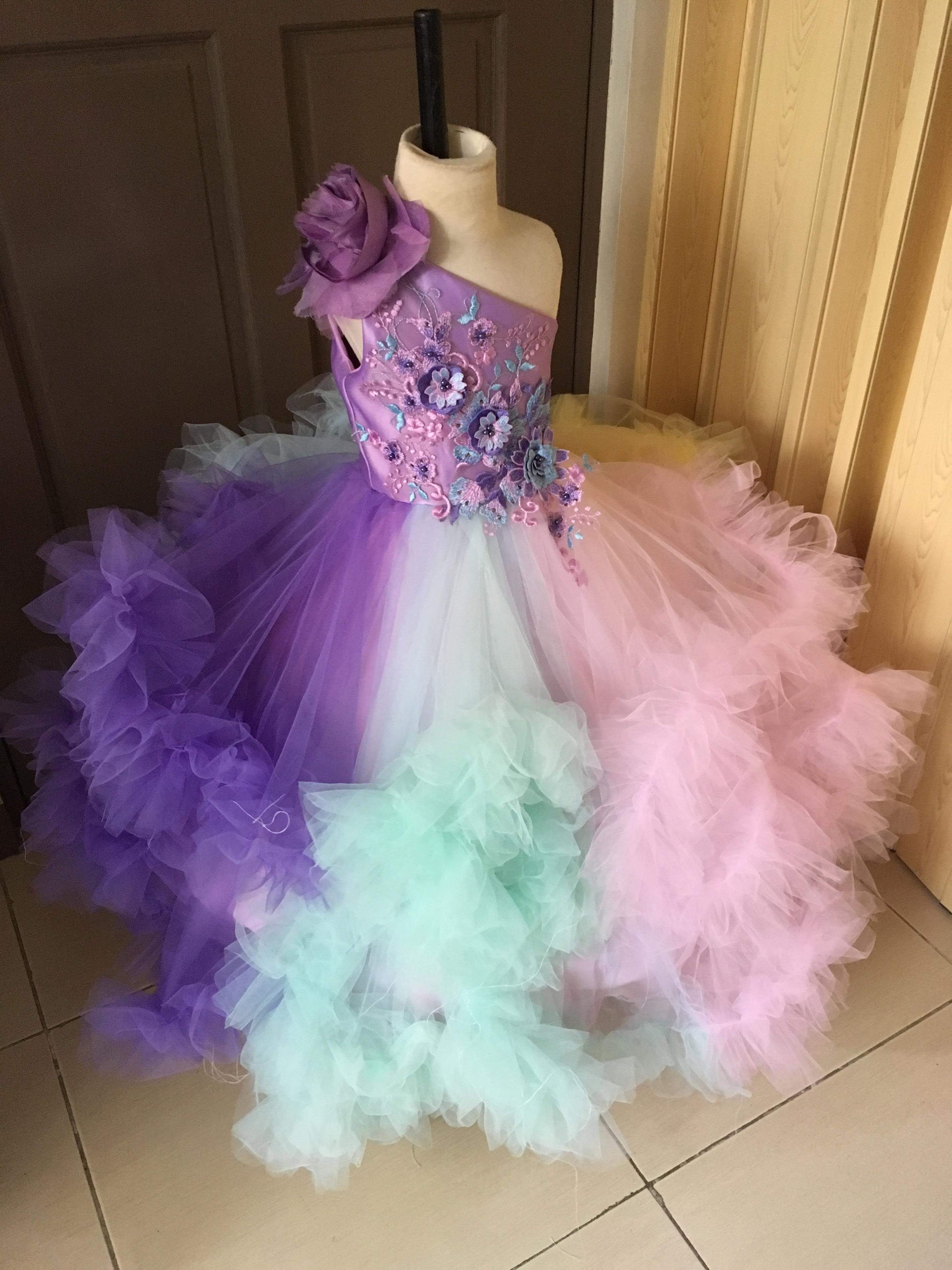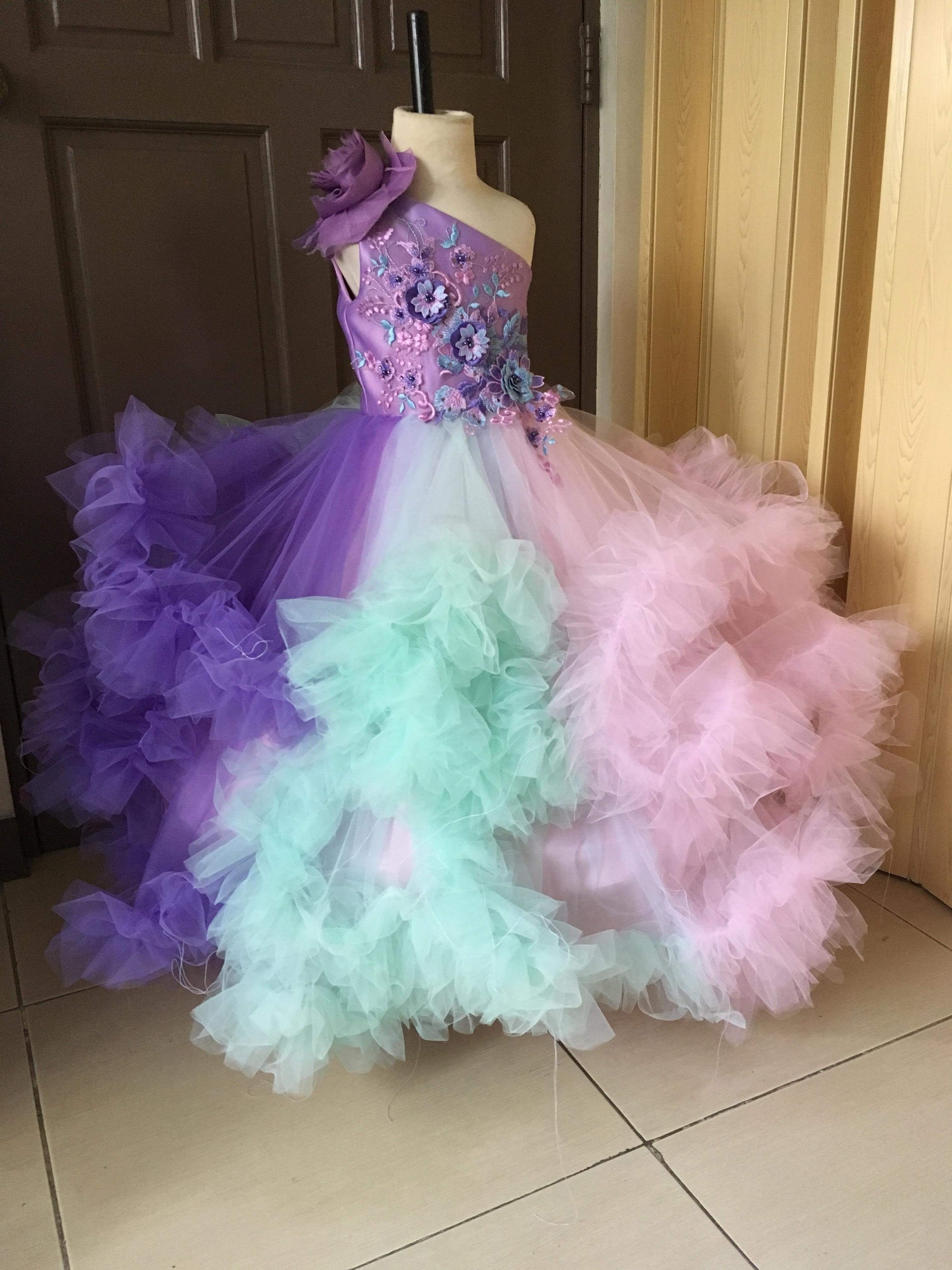 Make your little princess feel like a fairy tale character with this gown. The dress is perfect for special occasions like weddings, proms, birthdays, and other formal events. The gown is made of high-quality tulle fabric that's soft, light, and comfortable to wear. The dress features a full skirt with voluminous layered ruffles that give it a princess-like appeal.