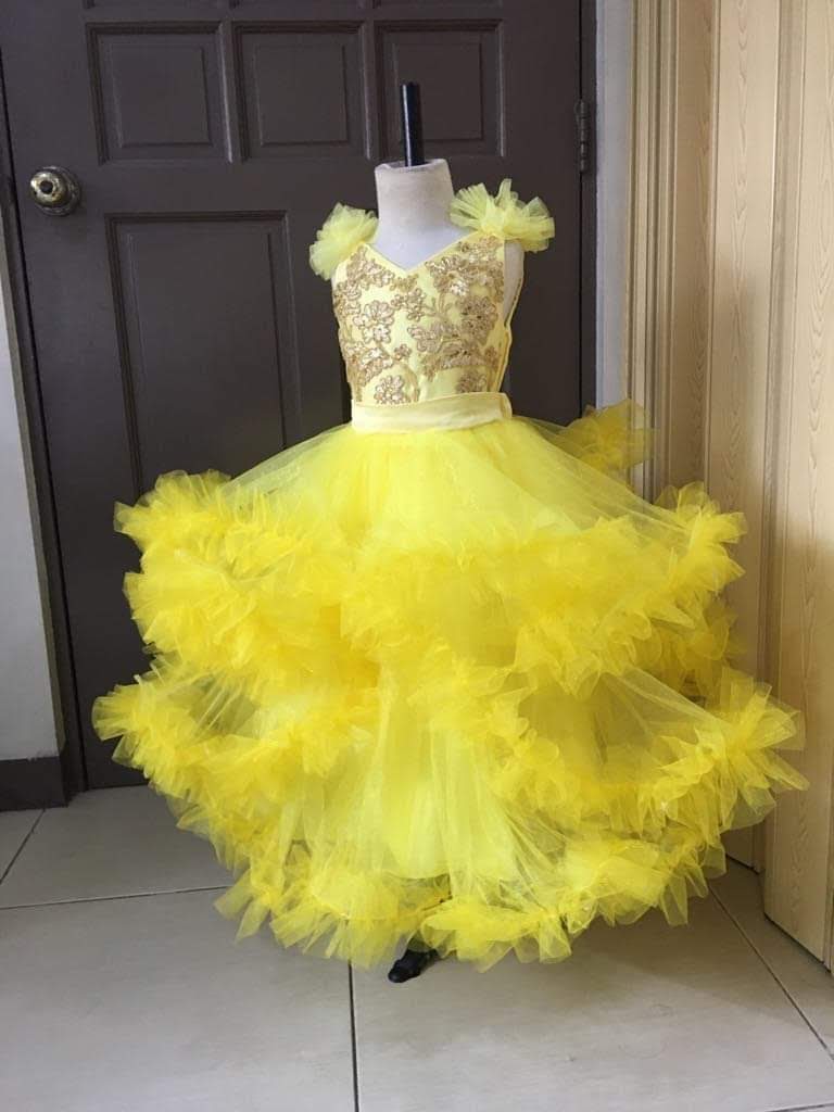 Make your little princess feel like a fairy tale character with this gown. The dress is perfect for special occasions like weddings, proms, birthdays, and other formal events. The gown is made of high-quality tulle fabric that's soft, light, and comfortable to wear. The dress features a full skirt with voluminous layered ruffles that give it a princess-like appeal.