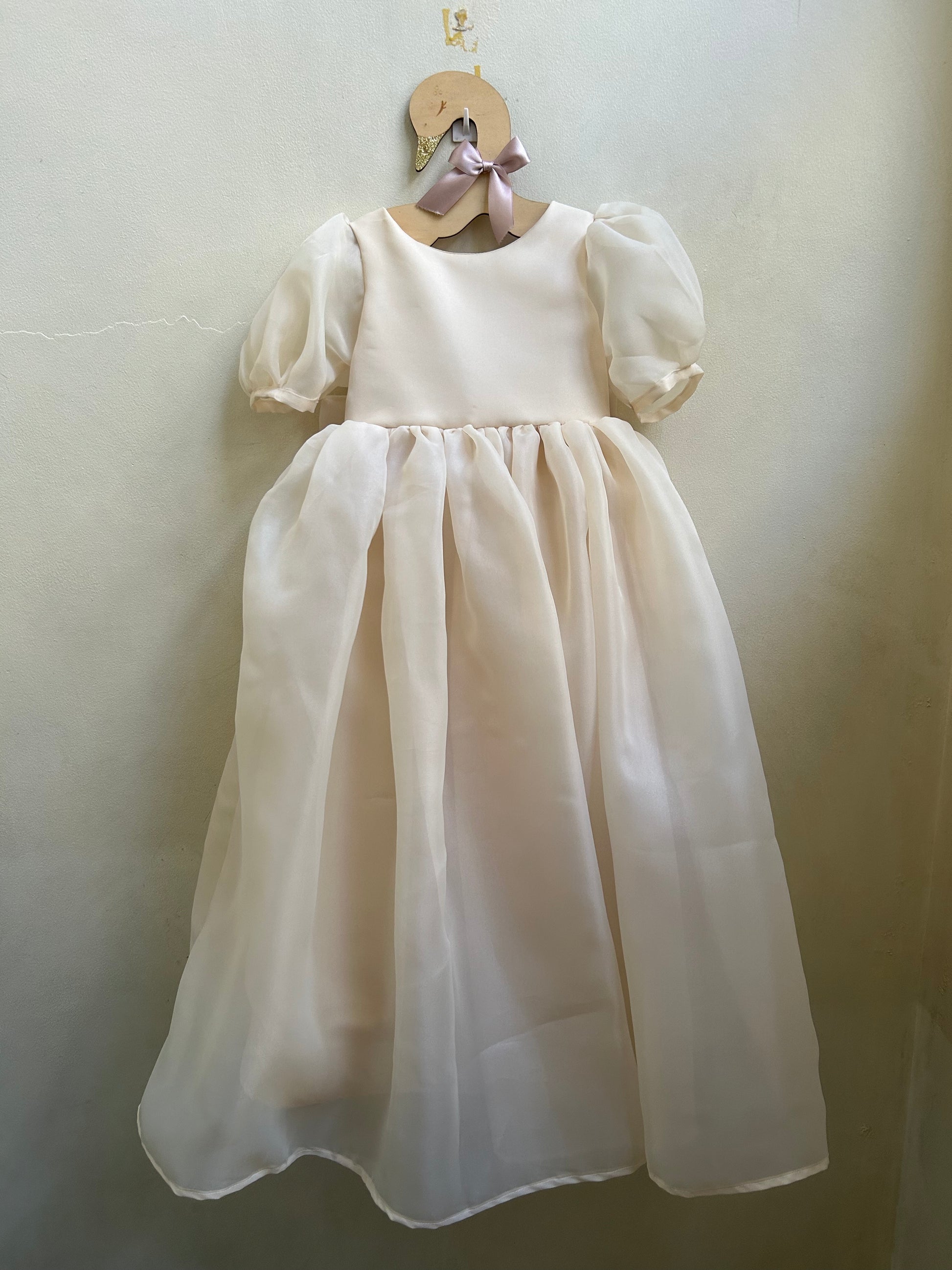 Make your little one feel like a princess with this stunning organza gown! Made with high-quality materials, this dress is perfect for special occasions such as weddings, parties, and more. The organza fabric gives the dress a delicate and elegant look, while the full skirt adds volume and movement. The dress is also fully lined to ensure comfort and coverage.